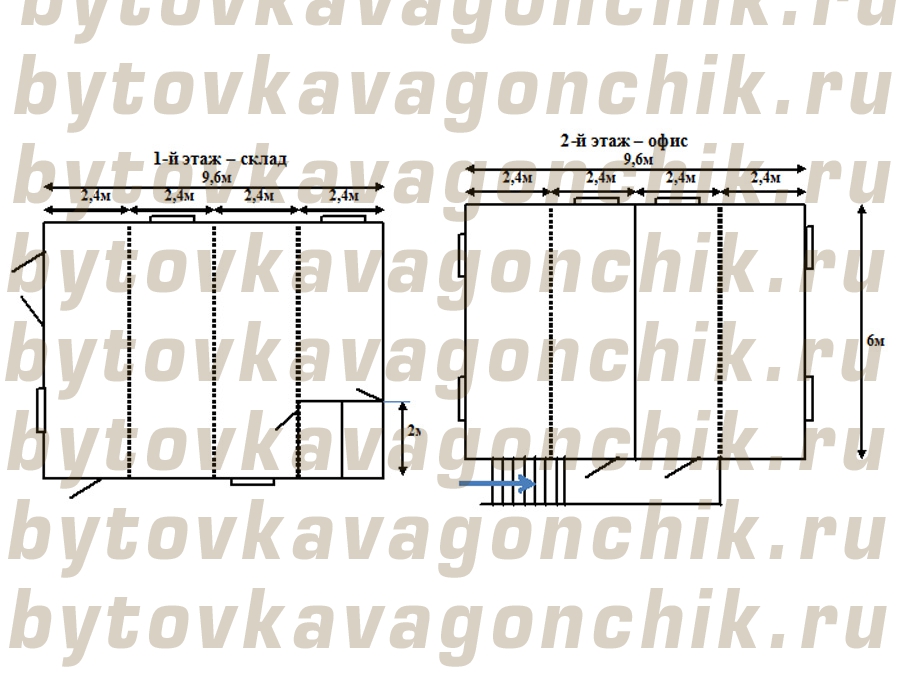 2. Блок –модуль 6,0*9,6*3,0 из  БК 6,0*2,4*3,0 -4шт.     (2-й этаж – офис)